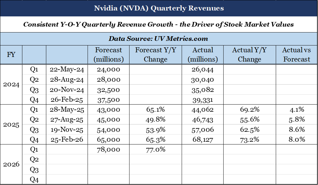 Companies that generate consistent, above percentage increases in quarterly year-over-year revenues will almost always produce higher stock market values.